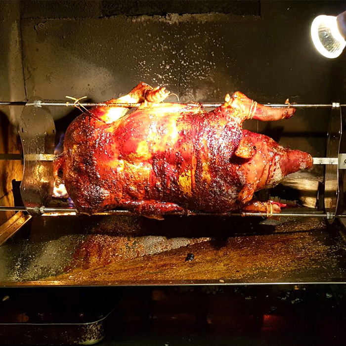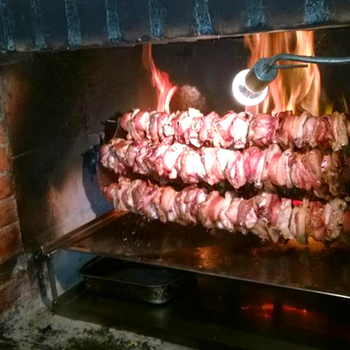 Lo spiedo bresciano e la porchetta sono le nostre specialità , che vengono servite con polenta e patate.